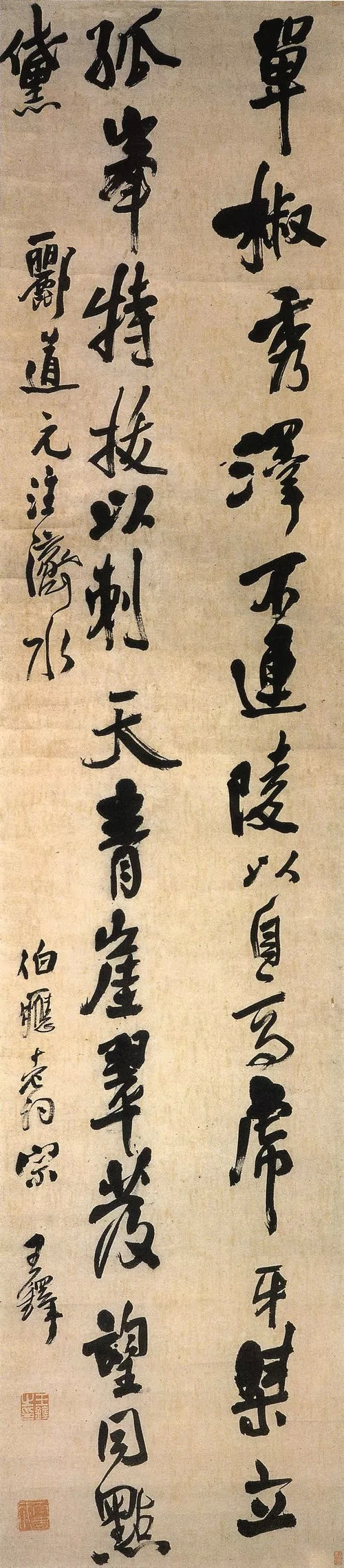 转仕清朝后,王铎草书更趋老辣苍朴,政治环境的变化给王铎带来心理上的变化,书风由明末时的奋发奔放转为入清后的理性孤冷。其在草书上有着深远的影响,同时期的傅山书风与铎较为接近,较之王铎草书,傅山草书则多连绵环转,而少了一份顿挫之态。