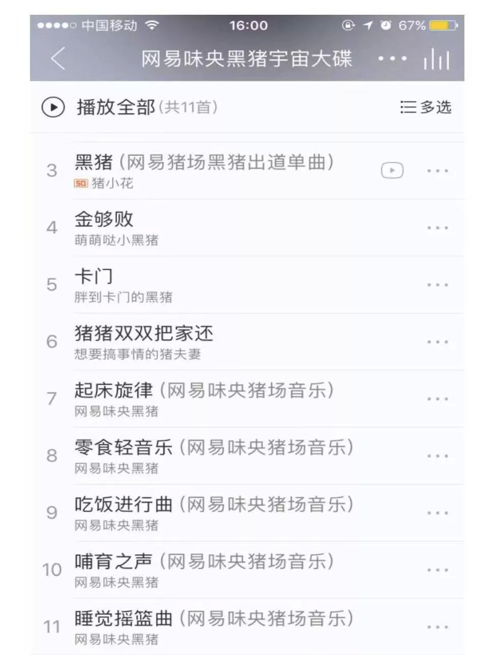还有更难想象的。网易味央猪每天吃着国际知名营养师调制的独家猪粮,还有番薯、板栗等零食,每头猪的伙食标准是40元/天。它们喝的是纯天然的矿泉水,上的是专属厕所,甚至还有专属歌单,早上有《起床旋律》叫醒,晚上伴着《睡觉摇篮曲》入睡。