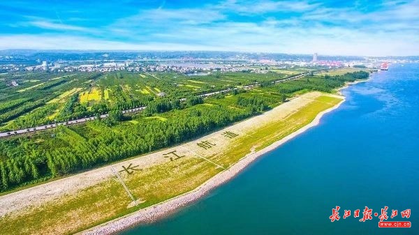 长江中游旧时滩涂实施生态护滩工程后,如今绿意盎然、风景如画。通讯员陈宇提供