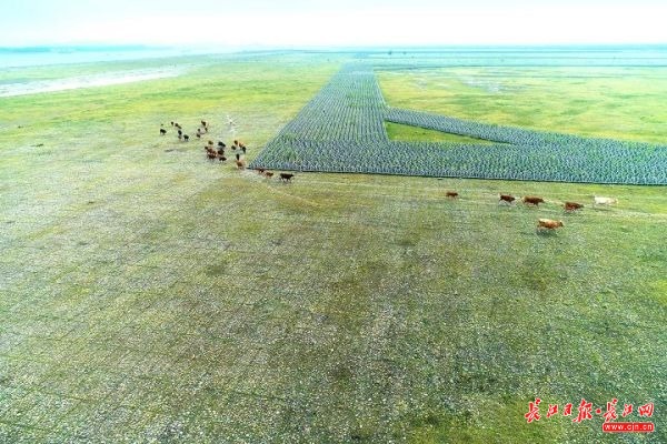 如今滩上草长莺飞、牛羊成群,俨然是个人造“生态湿地”。通讯员陈宇提供