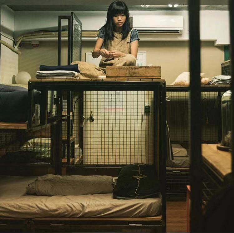 旅社里面的旅店设计是在香港笼屋的基础上加以改造,增加了更多空间。一层则被当作表演场地和商店,里面有些杂乱地摆放着西洋乐器、麦当劳logo、香港标志性文字和元素的海报等中西混杂的物件。