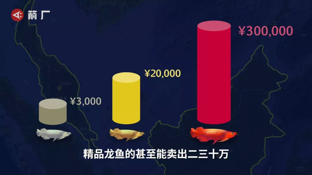 这种叫做龙鱼的水族宠物,来自印尼、马来西亚等淡水河流、湖泊,如今更多地生活在东南亚的养殖渔场中。从入门级到精品级,一条龙鱼的身价为3000元到两三万不等,金字塔尖的鱼就更是能达到二三十万或以上。