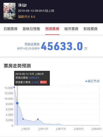 《诛仙》上映2日票房过2亿已经成为这个中秋档最热门的话题。