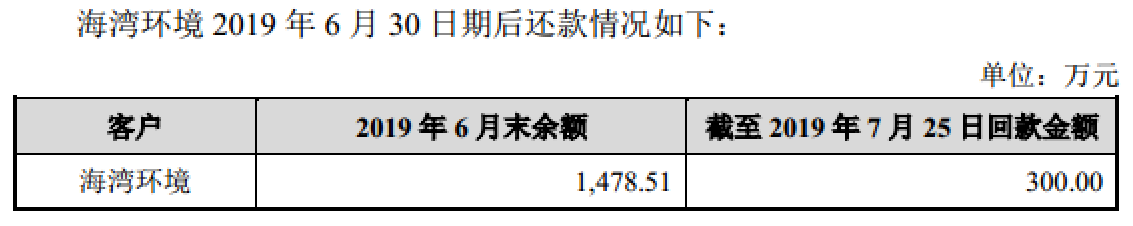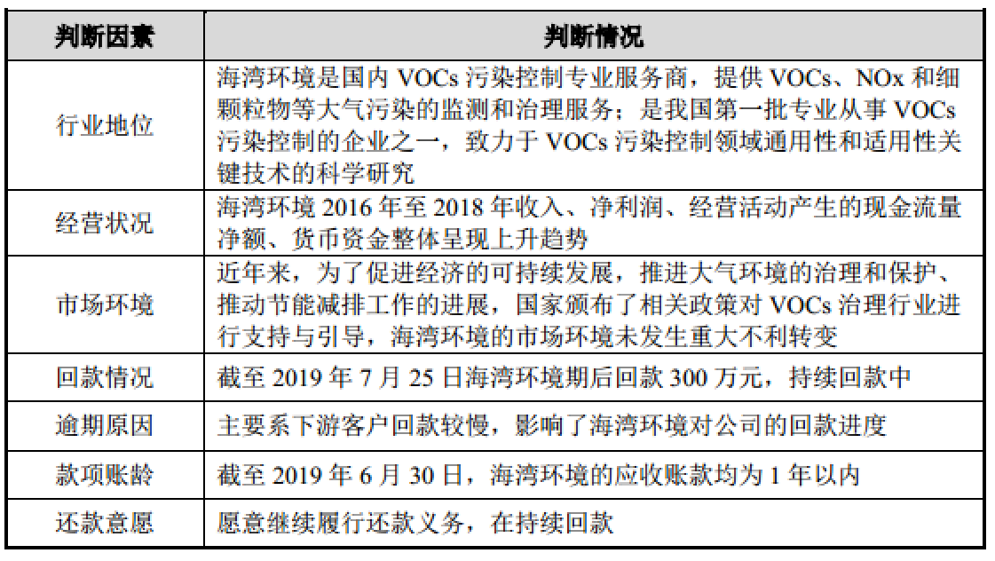 需要指出的是,截至2018年末,海湾环境存在较多超过信用期未回款的欠款。截至2019年5月31日,仅回款300万元,且根据公开信息,海湾环境曾终止过IPO申请。这也引起了监管的关注。
