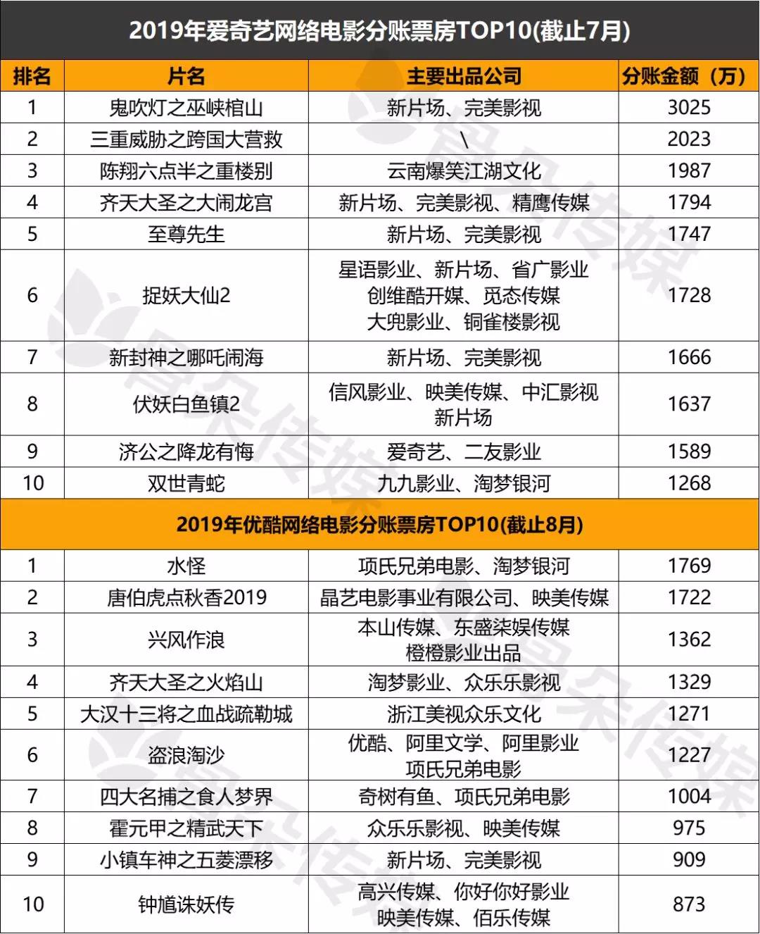 头部网络电影制作公司的2019年中成绩如何?