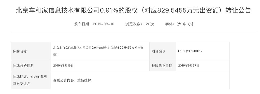 8月中旬,江苏省国资委官网上出现一则股权转让公告,常州武南新能源汽车投资有限公司拟将持有的北京车和家信息技术有限公司0.91%股权进行转让。