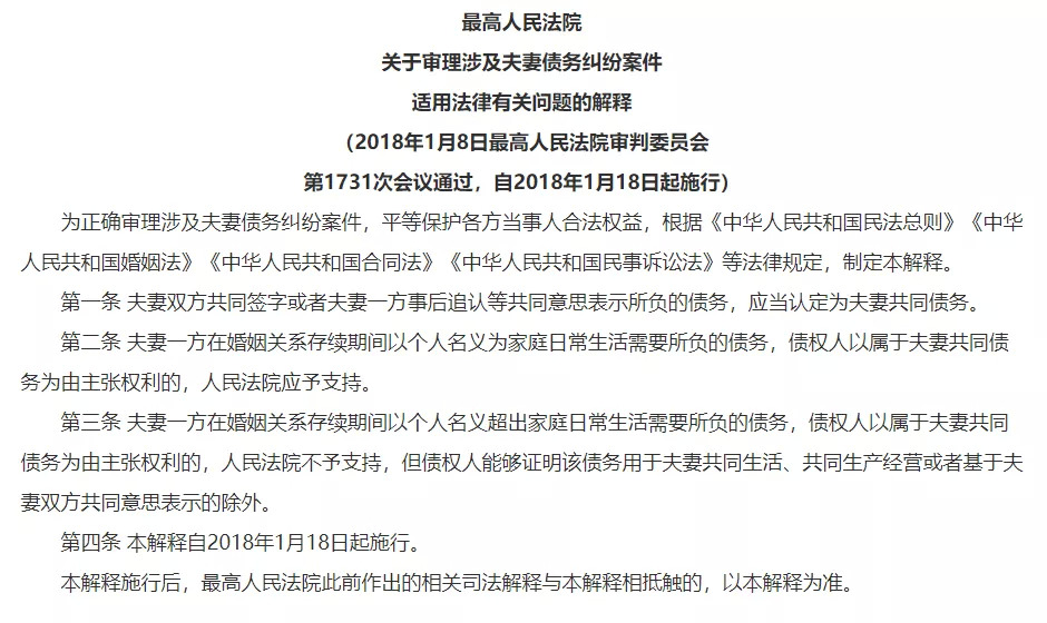 到2018年,最高院出台关于涉及夫妻债务纠纷案件适用法律有关问题的解释,才把24条存在的问题基本上解决。