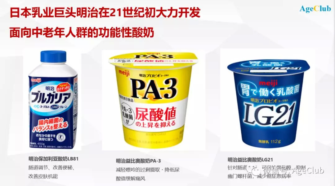 正是在这个时间点,乳业巨头日本明治从以婴幼儿食品为主转向大力开发面向中老年群体的产品,于是迎来企业业绩的巨大发展。