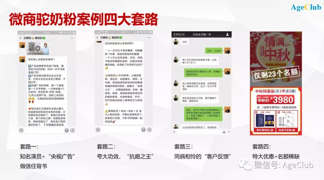 驼奶粉的微商销售模式本质上还是因为正规厂商不够重视中老年市场,才让这些依靠虚假宣传的模式大行其道。而在具备强大产品和营销实力的正规厂商面前,中老年奶粉市场的机会才刚刚开始。