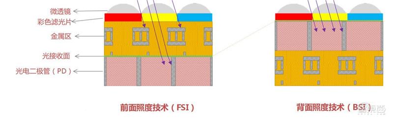 ▲前面照度技术和背面照度技术