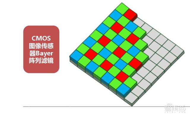 滤镜上每个小方块与感光元件的像素块对应,也就是在每个像素前覆盖了一个特定的颜色滤镜。比如红色滤镜块,只允许红色光线投到感光元件上,那么对应的这个像素块就只反映红色光线的信息。随后还需要后期色彩还原去猜色,最后形成一张完整的彩色照片。感光元件→Bayer滤镜→色彩还原,这一整套流程,就叫做Bayer阵列。