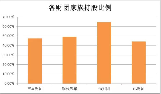 日本财团实行环形控股,力图用最少的资本换取最大的商权。韩国财团过于保守封闭,往往由一个家族掌控,家族成员持股比例很高,三星财团(47.5%)、现代财团(49.2%)、SK财团(64.6%)、LG财团(44.3%)的家族持股都在40%以上。