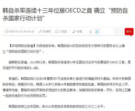 尽管韩国是世界上受教育程度最高的国家之一,但近十年来韩国失业率持续升高,自杀率也居高不下。具体见《比肩死刑的韩国高考:少数成为贵族,剩下的沦为牺牲品》一文。