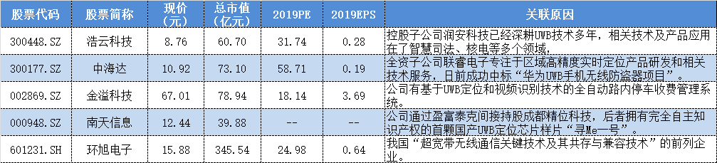 随着UWB技术的推广和普及,产业链相关上市公司有望充分收益,其股票的投资价值也将随之凸显,界面新闻整理了A股市场上部分UWB相关个股的情况: