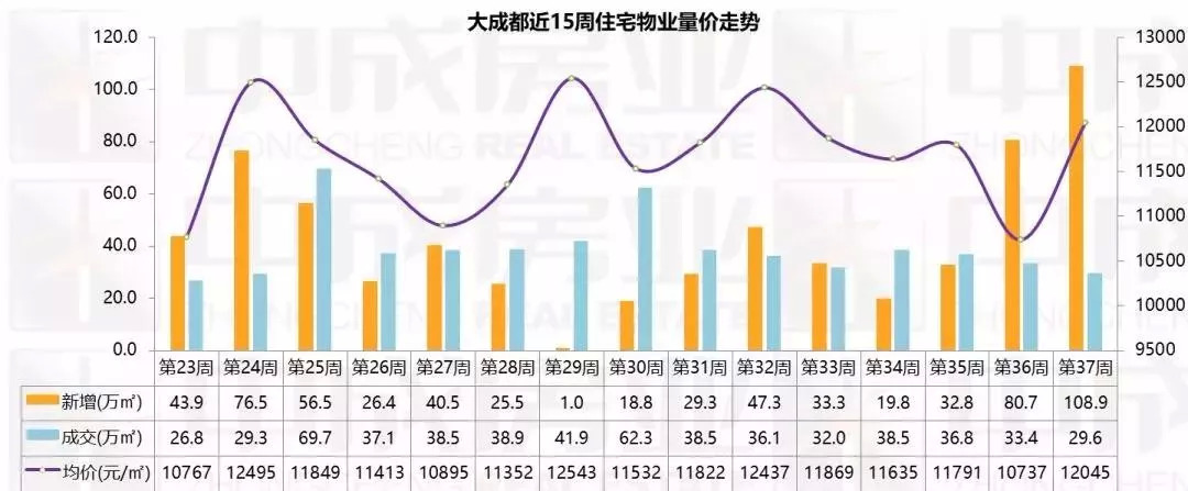 供应方面,上周大成都住宅新增109万㎡ ,环比上升35%。