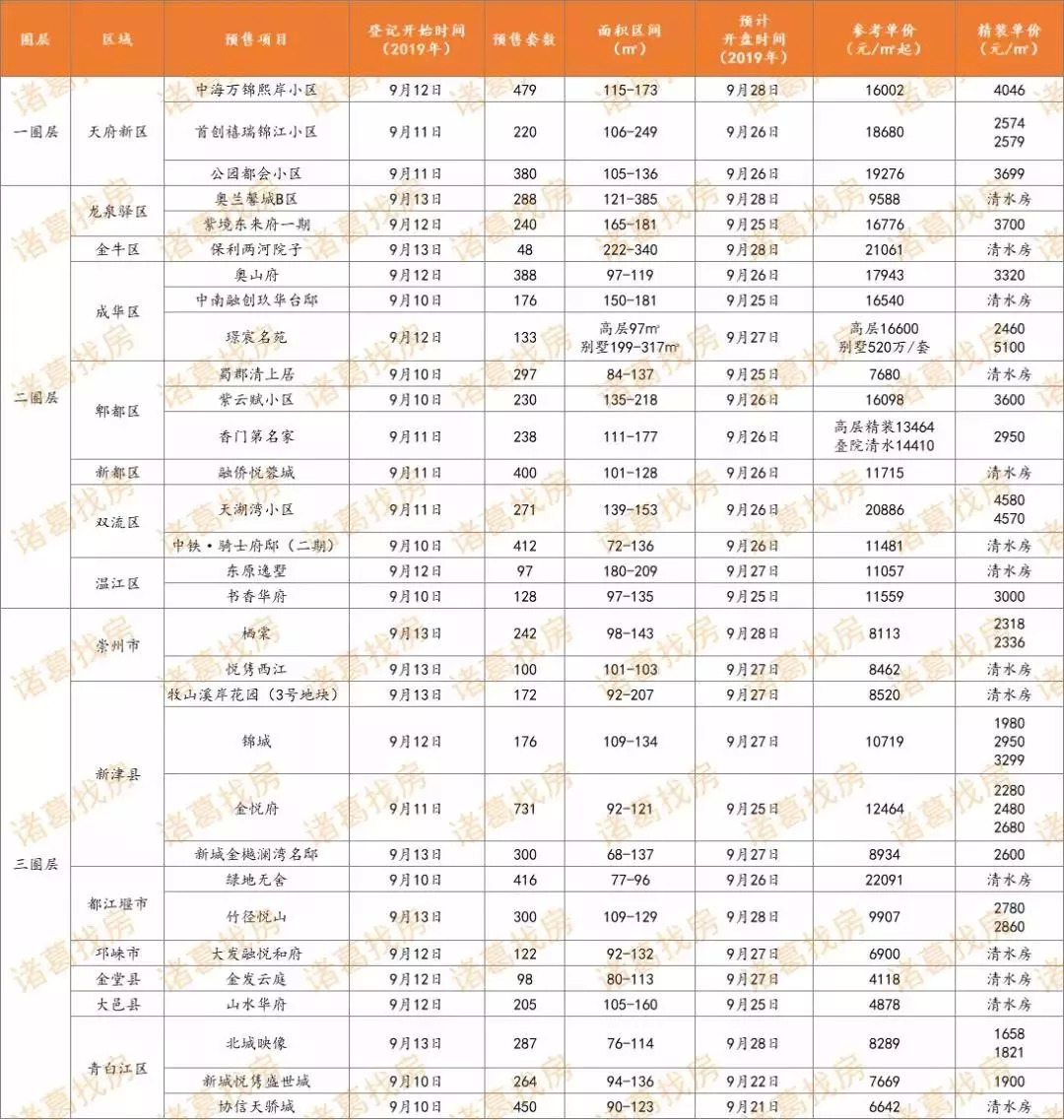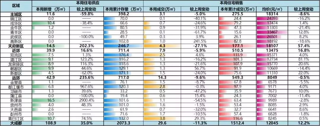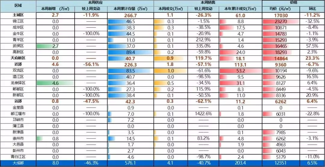 △ 2019.09.09--2019.09.15各区域住宅量价,数据源自成都中成房业