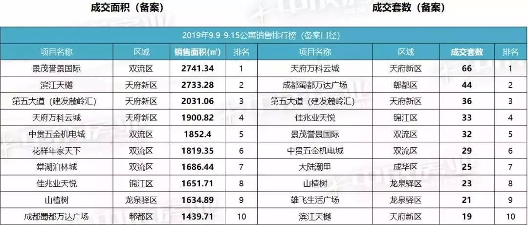 △ 2019.09.09--2019.09.15公寓销售排行榜,数据源自成都中成房业
