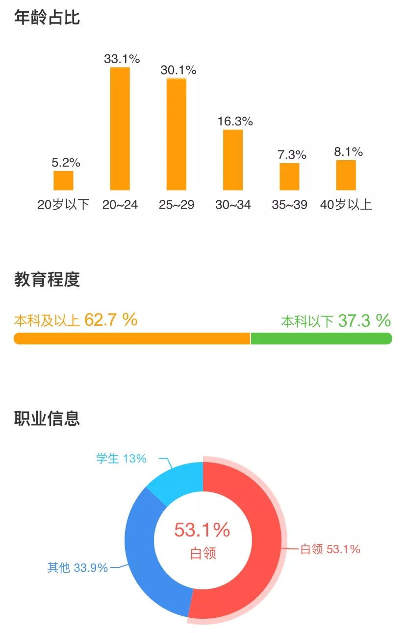 从年龄分布占比和职业分布占比来看,《诛仙Ⅰ》的想看人数多在20-29岁的年龄段,职业中以白领占比最高,达53.1%。《诛仙》问世多年,曾经在高中啃书畅想着武侠江湖的读者如今多已不再年轻,他们有人迈入职场,有人成家立业,他们才是用户画像中的主力群体,而并非年龄在20岁左右甚至更低龄的追星族。