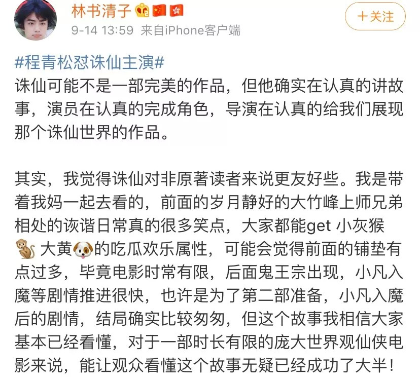 在大多数路人眼中,作为一部独立的仙侠电影来看,《诛仙Ⅰ》对路人是友好的,原著主线交代清晰,为后续作品的埋线也很充分。不少路人观众在微博表示,《诛仙Ⅰ》是中秋档期为数不多值得看的“合家欢”影片,笑点密集,名场面也相当催泪。