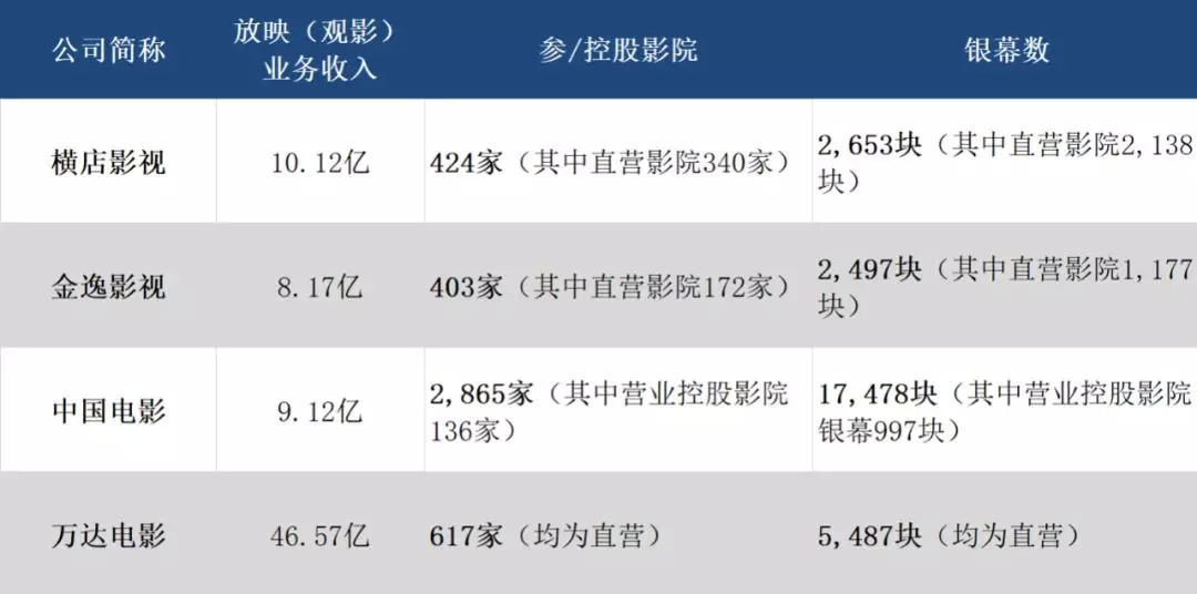 读娱君整理了四家代表性院线上市公司上半年的放映收入和影院、银幕数量: