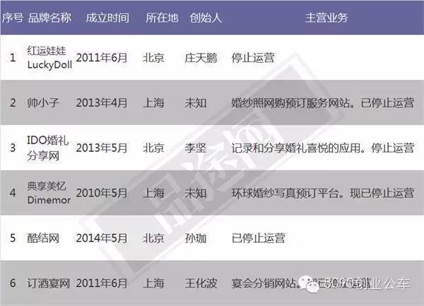 低频消费,缺乏资源。婚嫁行业的互联网化进程较短。在本次盘点中盘点出的已经停止运营的大部分企业成立时间稍早。由于婚嫁行业是低频需求的行业,如何提高用户粘性,不断的拓展产业链(横向或纵向)就成了每个企业亟待思考的问题。