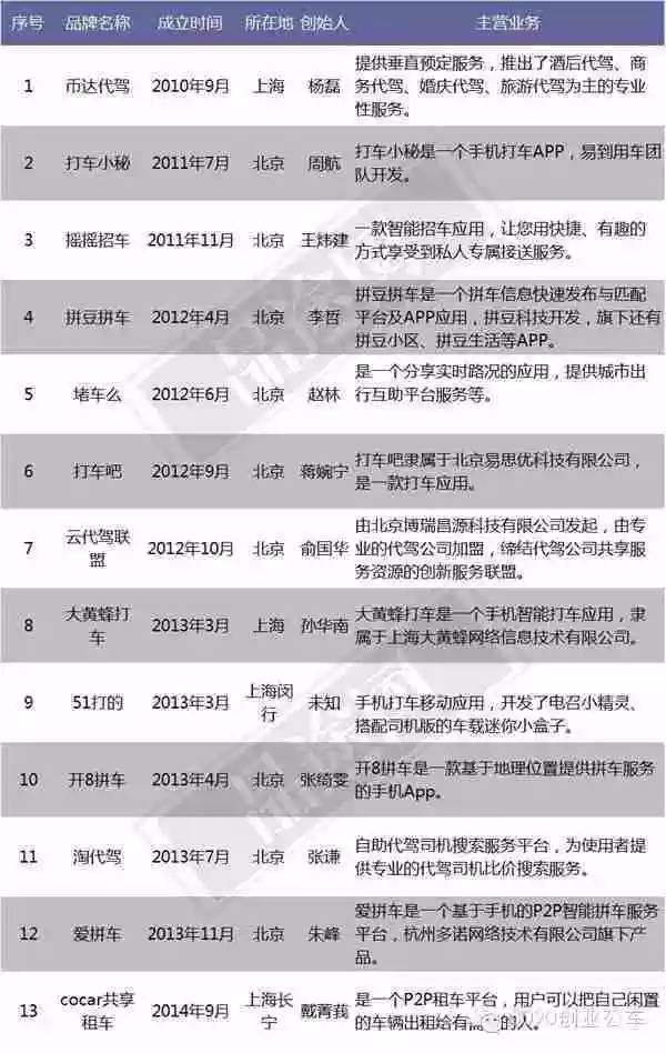 1、大佬初现,格局已成。对于初创公司来说,简直是内忧外患。滴滴快的合并后如猛虎,更是打破目前创业公司融资最高纪录。来自国际巨头Uber的威胁,挂着拼车的羊头,却做着专车的生意,直接威胁拼车和专车两条产品线。