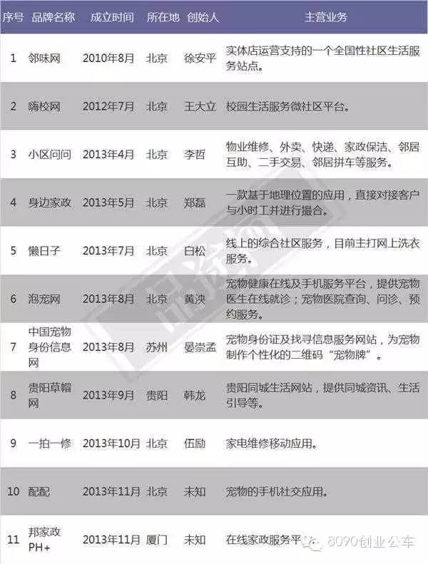 本次盘点的社区O2O死亡企业有11家,其中有9家是在2013年成立的,所在城市以北京为主,涉及行业有家政综合服务、洗衣服务、家电后服务、宠物照顾、校园电商、物业服务。