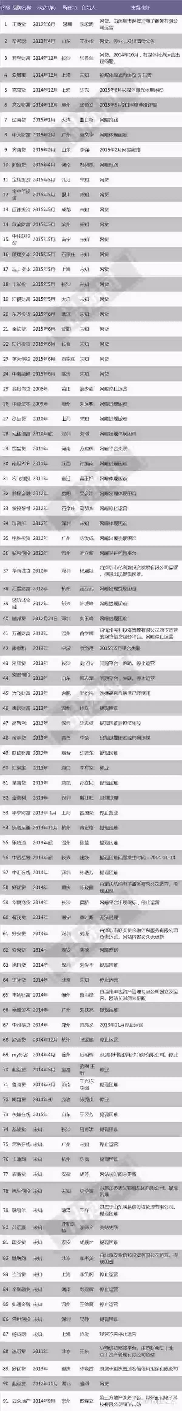 由于缺乏监管,P2P行业曾长时期的处于野蛮式的生长模式中。据P2P第三方评级机构安投宝数据显示,截至2015年6月底,中国共有超过2100家P2P平台运营;而在2015年上半年成立的新平台就有约900家,许多国资银行背景的公司也加入到P2P大军。截止6月底,国资、上市公司和银行背景的P2P公司总计超过70家。但与此同时,上半年P2P行业就出现了456家问题平台,其中出现提现困难的平台占40%,而关站失联、诈骗类的问题平台更高达50%。