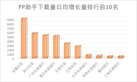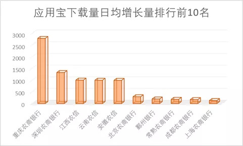 2.应用市场下载日均增长量排行:重庆农商银行日均增长量名列榜首
