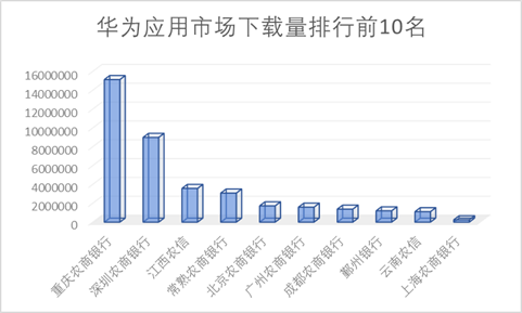 1.应用市场下载排行:重庆农商行、深圳农商行、安徽农信入前三甲