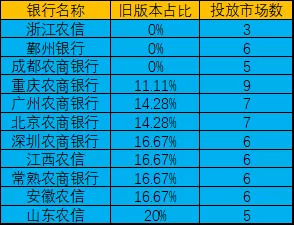 通过分析15家农商银行手机银行APP在各个应用市场中的版本分布情况,报告发现,浙江农信、鄞州银行和成都农商银行在各自所投放的应用市场中不存在版本差异,而其余银行都存在上线APP非最新版本的情况。