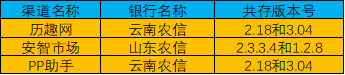 5. 版本差异情况:浙江农信、鄞州银行和成都农商银行不存在差异