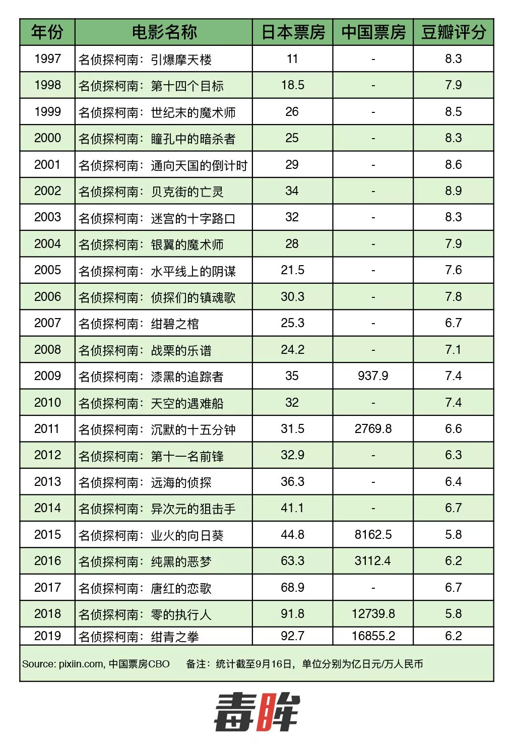 相比无论是大盘还是单片都有陷入瓶颈的日本市场,以中国为代表的海外市场,却有着更广阔的增长空间。据毒眸统计,截至16号,《柯南2019》已进账1.7亿元亿元人民币,按最新汇率换算约合24亿日元,已相当于其本土数字的25%以上,且后续这一比例还将继续攀升。