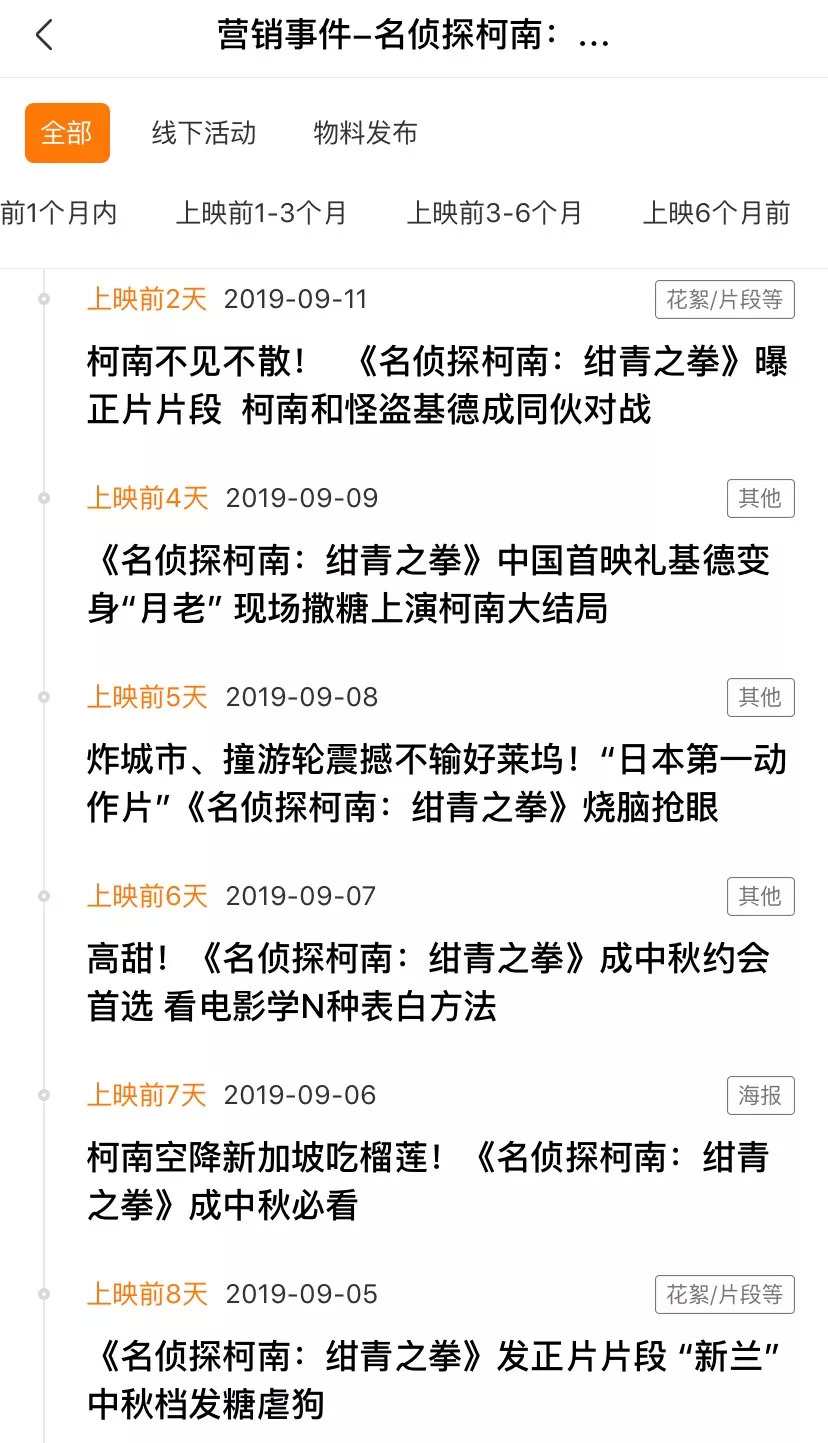 虽然从各平台公布的营销信息来看,《柯南2019》并没有像同档期电影一样做阵势很大的宣发,但是接近该片发行方的人士向毒眸透露,片子在宣发、营销层面其实下了不少功夫,只不过集中在了“自有圈层”上:“毕竟是一个20年的大IP,培养了很多粉丝用户,片方也没奢望一定要大爆卖到8亿、10亿,能够覆盖成本、票房超过上一部,对我们来说就是好成绩。所以我们的主要方向先放在了做透自有圈层上,之后才是能破圈。”
