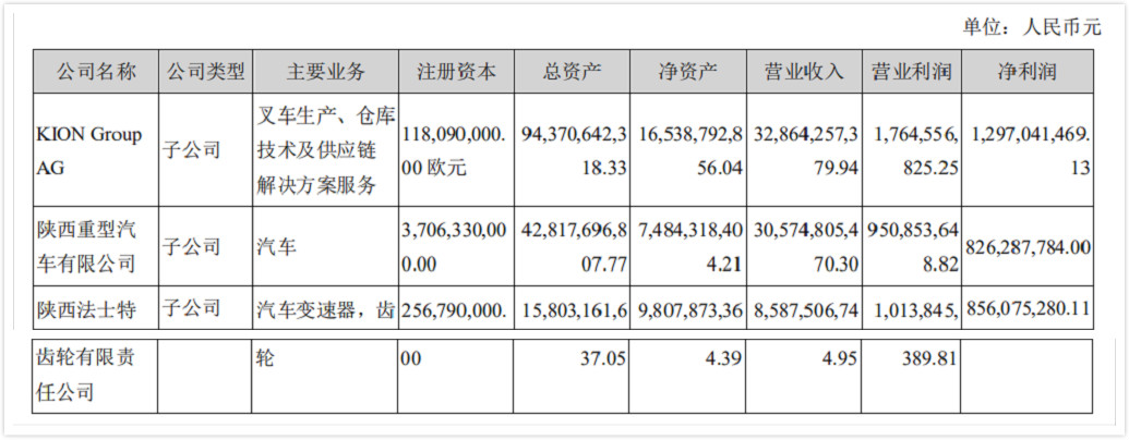 公司控股子公司的业绩表现也较亮眼。其中,陕西重型汽车有限公司上半年销售重卡达8.7万辆,同比增长3.1%,市场占有率达13.2%,位居国内重卡企业第一梯队,竞争力持续增强;另一家子公司陕西法士特齿轮有限责任公司上半年共销售变速器58.2万台,同比增长11.3%。而其海外控股子公司KION Group AG上半年销售收入约为43.6亿欧元,同比增长12.6%。