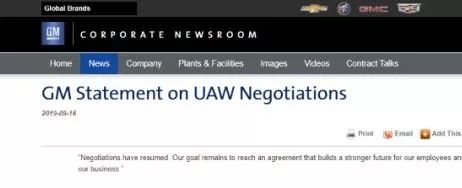 在今天工人开启罢工之后,通用汽车官网发布消息称,双方的谈判在周一上午十点已经恢复,目前的状况是工人一边在罢工,双方的谈判也在进行。