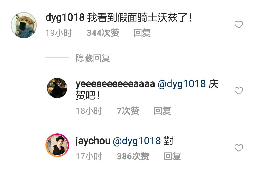 甚至有网友在Instagram上向周杰伦求证:“我看到假面骑士沃兹了!”还得到了周董本人的肯定回复。