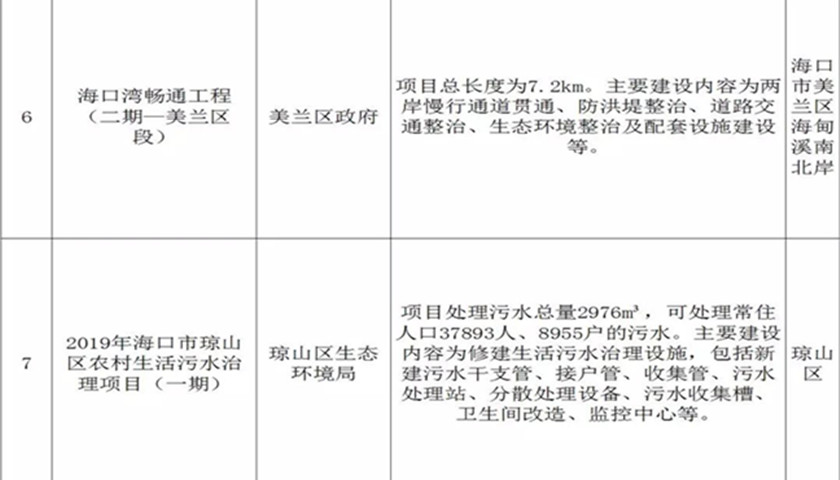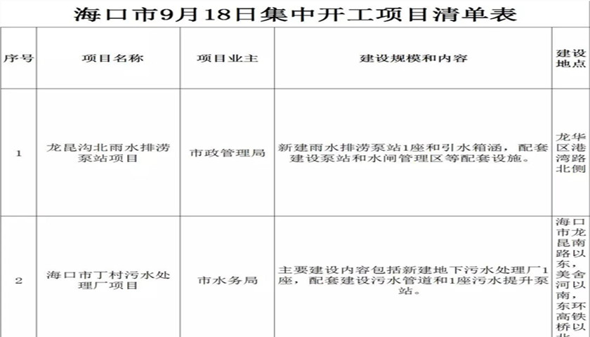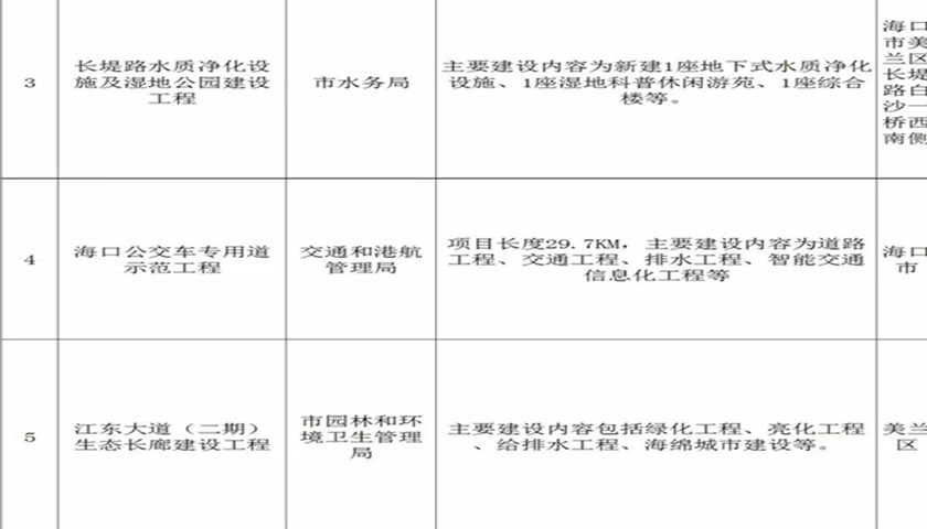 一是海口市人民政府与国家开发投资集团有限公司战略合作项目。主要合作内容是国投公司在海口投资企业2019年、2020年力争实现营收80亿元、100亿元,力争实现税收4500万元、5000万元,每年力争有一定涨幅,支持海口经济的健康发展,助力海口市打造全面深化改革开放试验区的创新区。