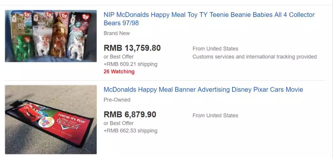 因为美国收藏文化浓厚,所以市场上一直有针对成人玩家的玩具。例如TY公司生产的Teenie Beanie 系列毛绒玩偶,看起来平平无奇,但一直从上个世纪卖到现在。它们过去和麦当劳合作推出的随餐玩具已经在Ebay上也被炒到了天价。