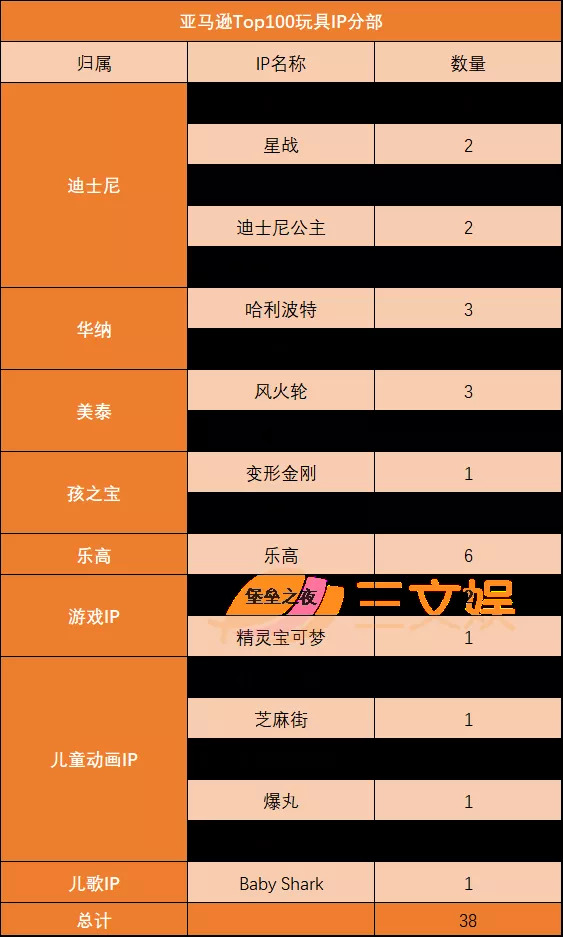在亚马逊收录的106个玩具中,有38个都属于IP衍生品,占比超过三分之一。