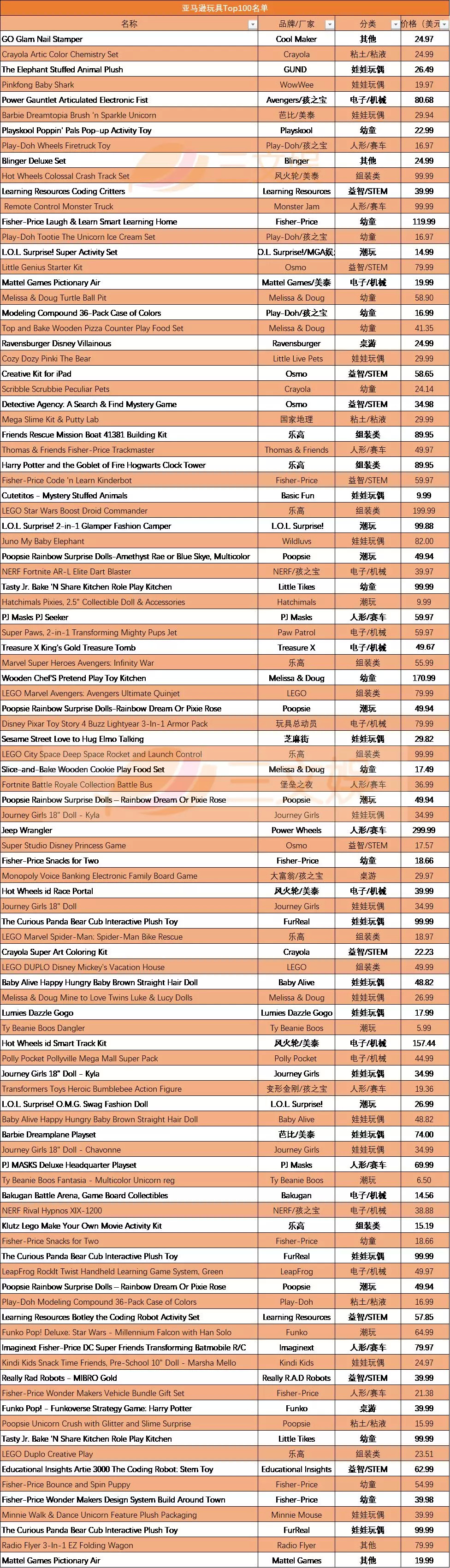鉴于亚马逊在玩具销售领域的地位,这个榜单在某种程度上确实能够反映市场的变化。