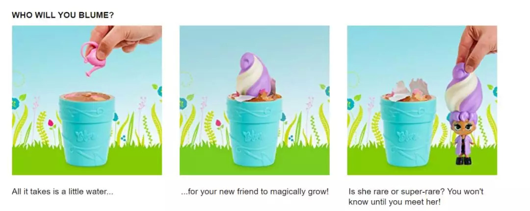 另一家入选亚马逊榜单的Blume Doll也推出了一款开箱过程很特别的盲盒。玩家在撕开包装以后,要给盲盒的顶部“浇”一点水,然后盲盒里的玩偶会自己“生长”出来。