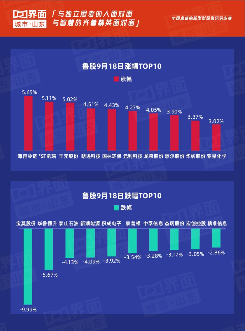 9月18日,山东省内沪深股票有94只个股上涨,97只下跌,15只与上一个交易日收盘价持平;