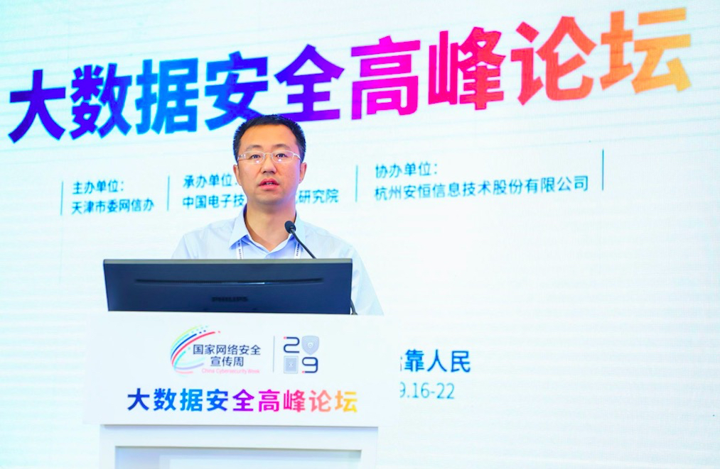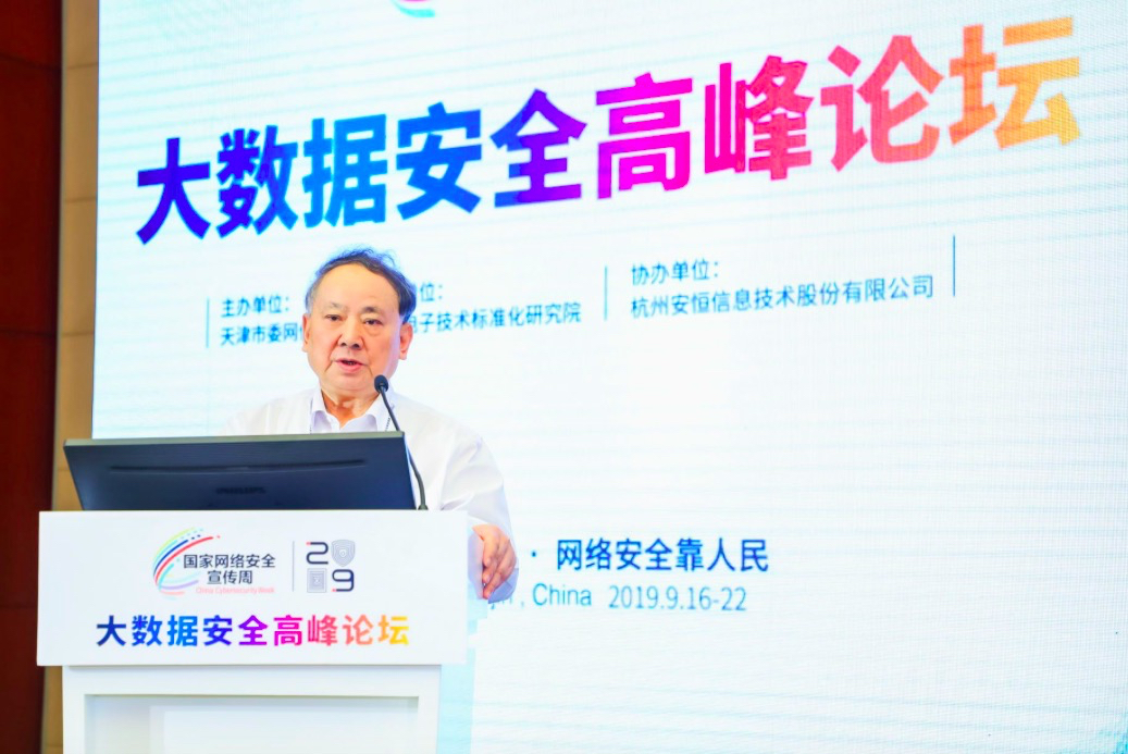 9月17日上午,由天津市委网信办主办,中国电子技术标准化研究院承办、杭州安恒信息技术股份有限公司协办的“2019年国家网络安全宣传周——大数据安全论坛”在天津市成功举办。论坛以“新时代下大数据安全新态势”为主题,中国工程院院士沈昌祥、中央网信办网络安全协调局处长陈吉学、国家市场监督管理总局标准技术管理司副处长刘大山、中国信息安全研究院副院长左晓栋、中国电子技术标准化研究院信息安全研究中心主任刘贤刚、杭州安恒信息技术股份有限公司首席安全官刘志乐以及来自部分省市大数据局领导、网络安全企业、科研院所、高校等200余位代表参加了论坛。
