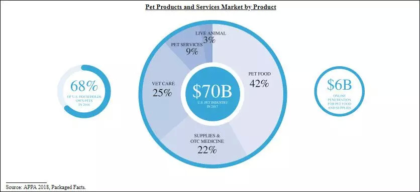 市场调查公司Packaged Facts数据显示,75%的家庭愿意为宠物购买更加高档的产品和服务。此外,包括美容、住宿、培训等非医疗宠物服务的年支出从2013年的每户105美元上涨到了2017年的每户131美元。