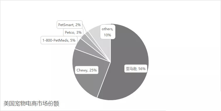 从市场份额来看,亚马逊也占据半壁江山,2017年第一季度的数据显示,亚马逊市场份额在55.9%,远高于Chewy的24.9%,后面的1-800-PetMeds在5%,Petco在2.7%,PetSmart在1.7%。