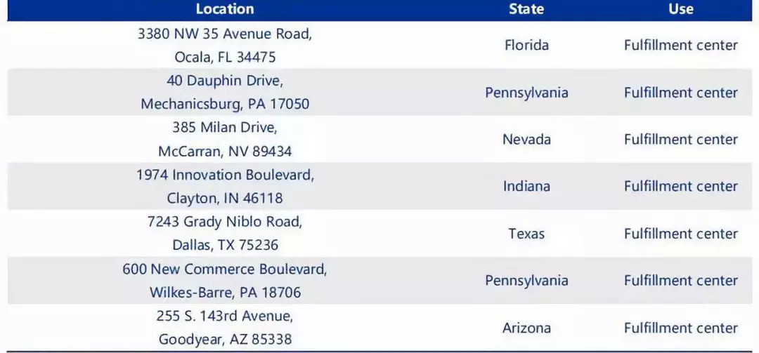 - Chewy 目前在全美建立了7 个仓储物流中心,分别分布在美国的西部(Arizona、Nevada),中部(Indiana、Texas)以及东部(Florida、Pennsylania),80%的用户能够被覆盖到次日达的物流服务,两日达的服务则100%覆盖了全美地区;