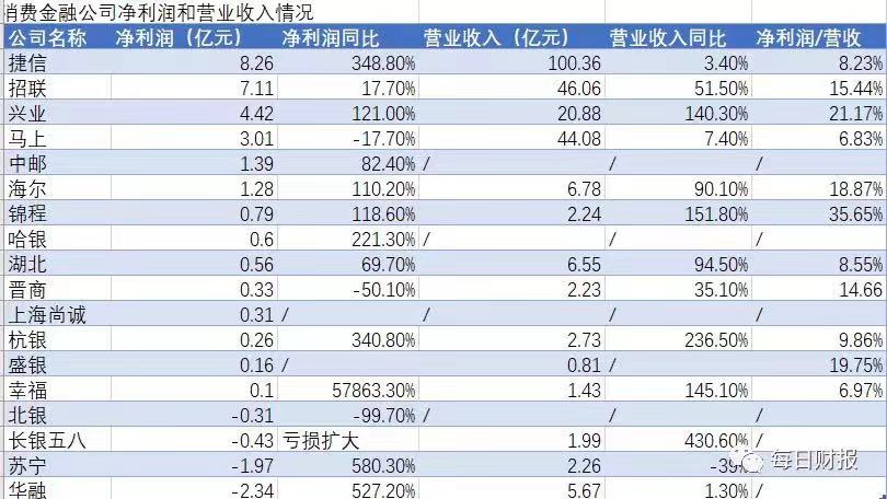 6家净利过亿 兴业消费金融成黑马