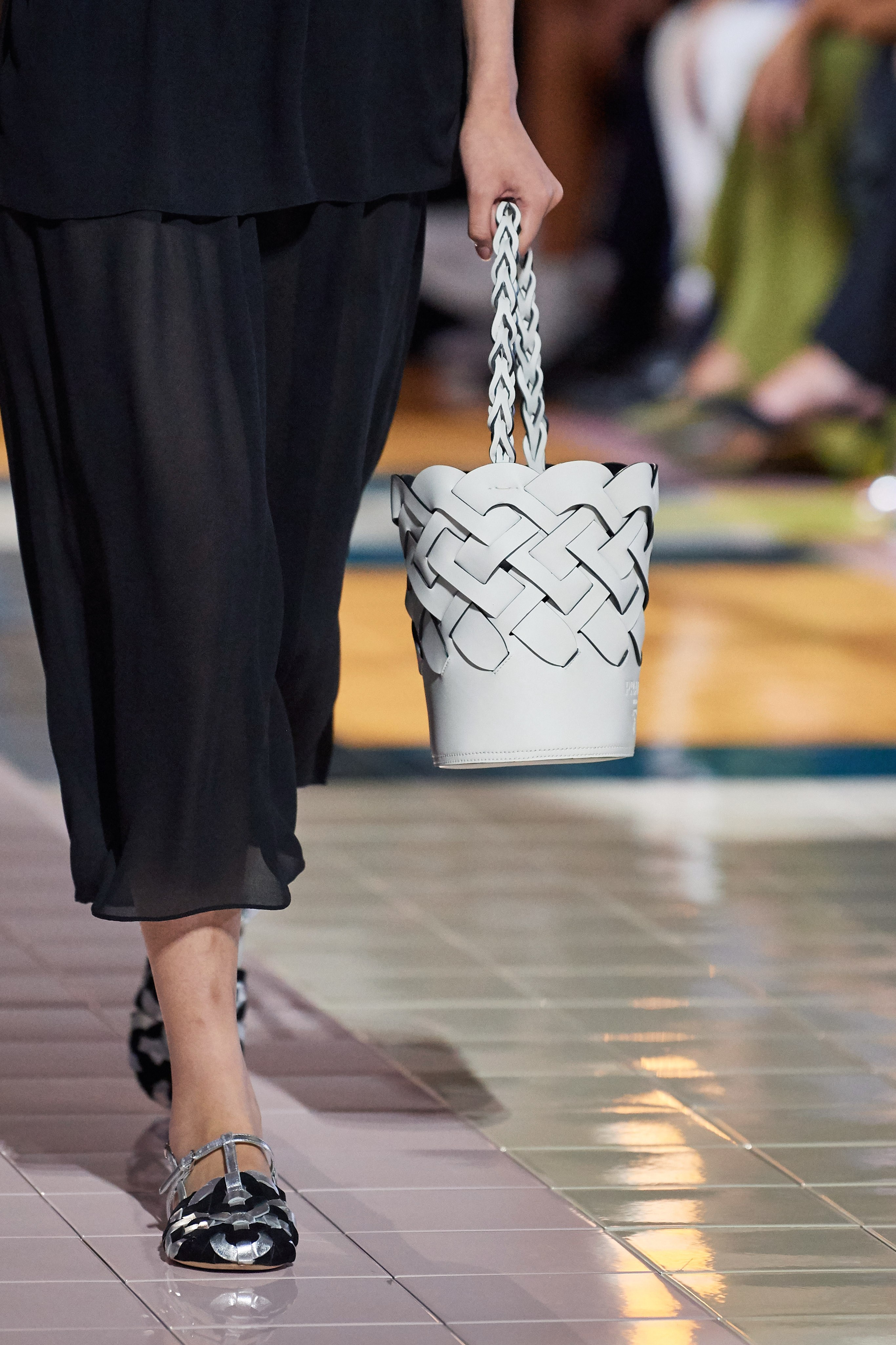 这一季,Prada的新意也许就体现在了手袋上。水桶包有着极高的出场率,包括各种材质的“水桶”和不同样式的“提手”,还有过去很少出现的竹节提手亮相。