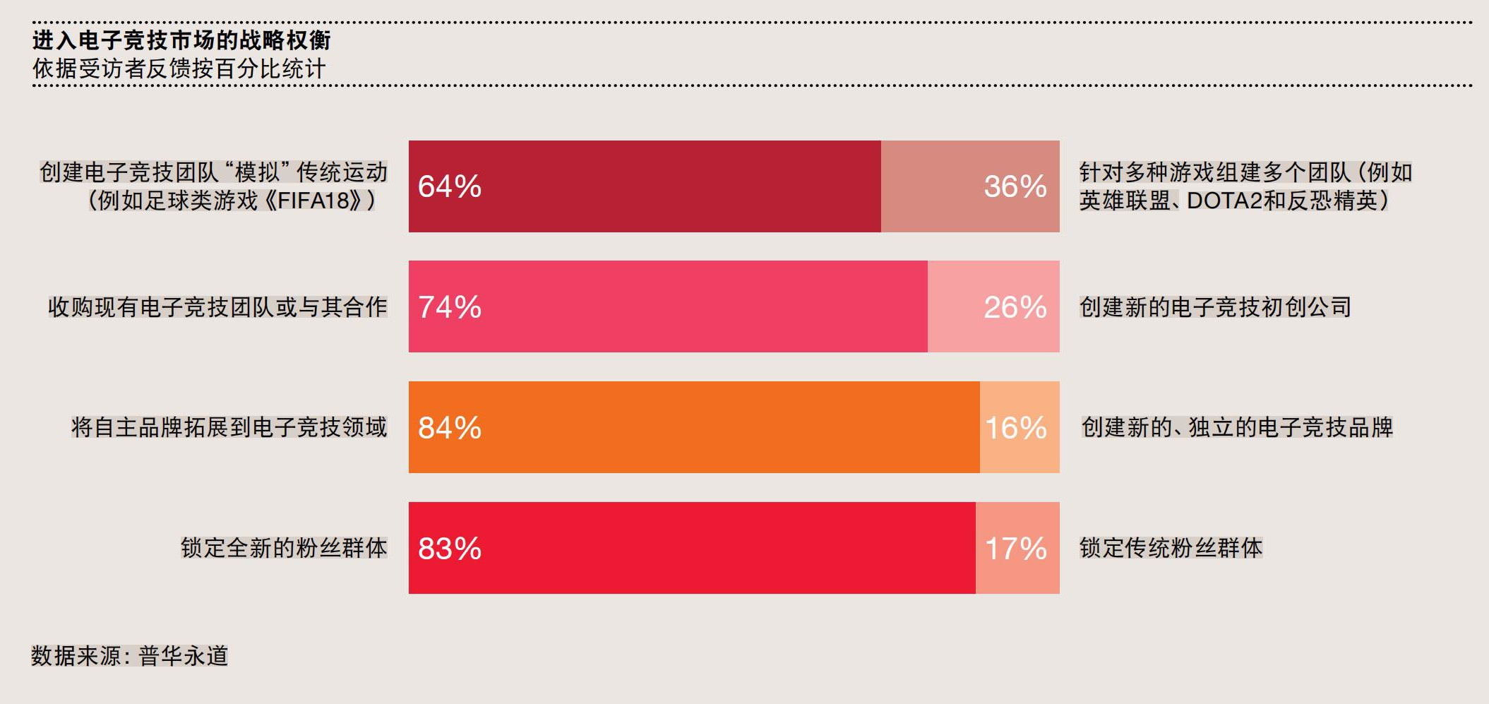 《2018年普华永道体育产业调研报告》针对传统体育进军电子竞技行业的策略选择进行的调研结果显示:74%的受访者认为收购现有电子竞技团队或与其合作,是经过权衡后,进入电子竞技市场的最优解。运动品牌在电竞营销方面,凭借其所蕴含的独特体育文化和体育精神,具有巨大的优势。